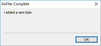 Notice that the segment “right here” is missing, That is because as the string was copied to the variable, the zero-byte stopped the copy process. Legato sees that as the end of the string. If a zero-byte is inserted in the variable, the MessageBox function would not receive any data passed it.
